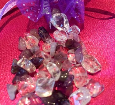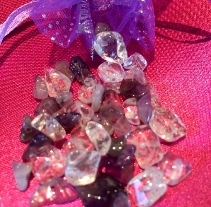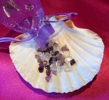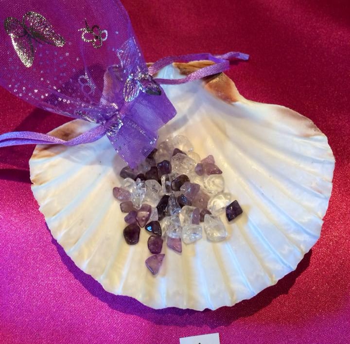 - Placez au cœur de la coquille st Jacques les 50gr de cristaux d'Améthyste et de roche qui seront de ce fait toujours en purification.